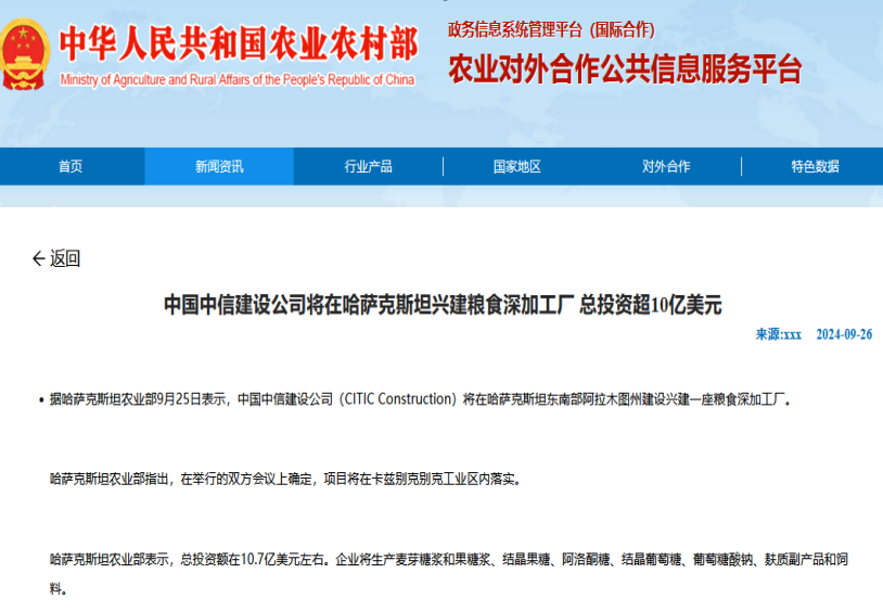 定了!中信建设公司将在哈萨克斯坦投资超10亿美元